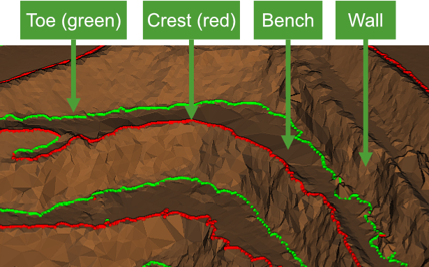 | Wall | Steeply angled slope between a crest and a toe. | ||||