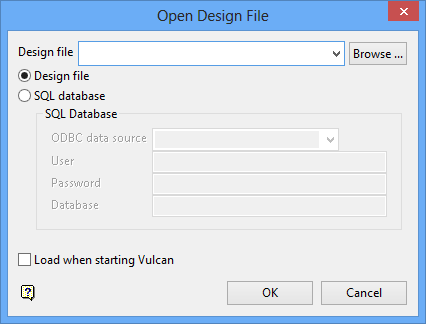 - If a design file (also known as a design database) has not been added to the project file, then the Open Design File panel displays.