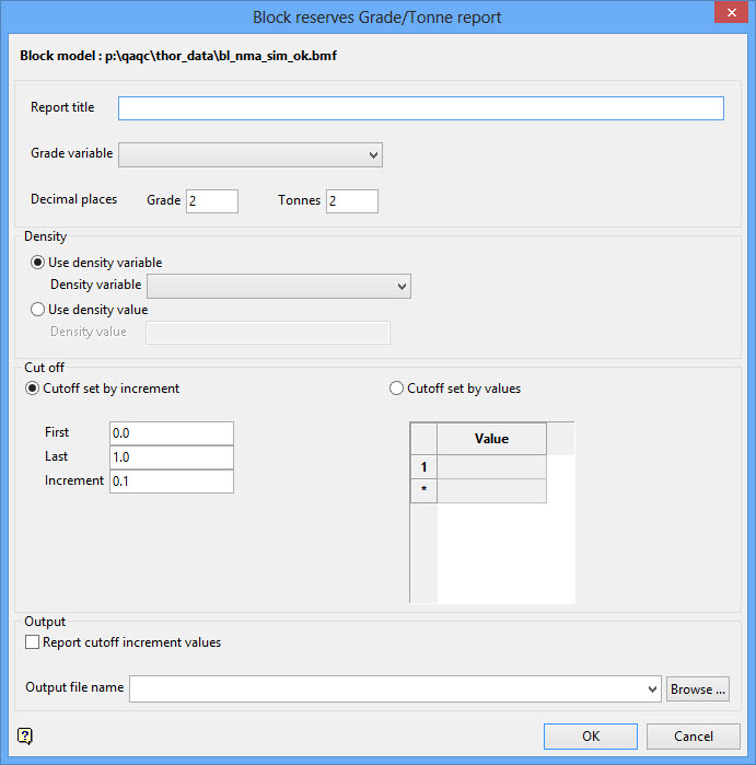 Select this option to cut-off the grade variable at specific grade values. You will need to specify the values that you want to report (a maximum of 20 values).