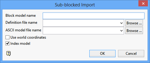 Select this check box if you want to index the resulting model. We recommend this as it will decrease access time when performing block model operations.