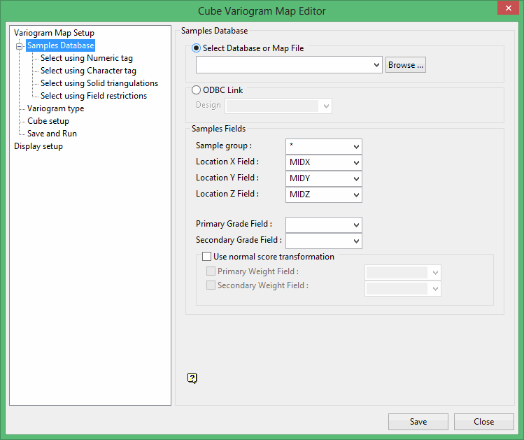Use this section of the interface to select the database and database fields that will be used to generate the variograms.