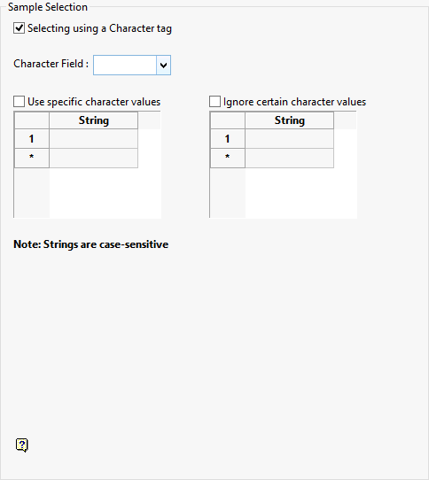 Use this method to limit the samples to a character field and then only to those entries in this field that have specific character strings or to ignore those entries.