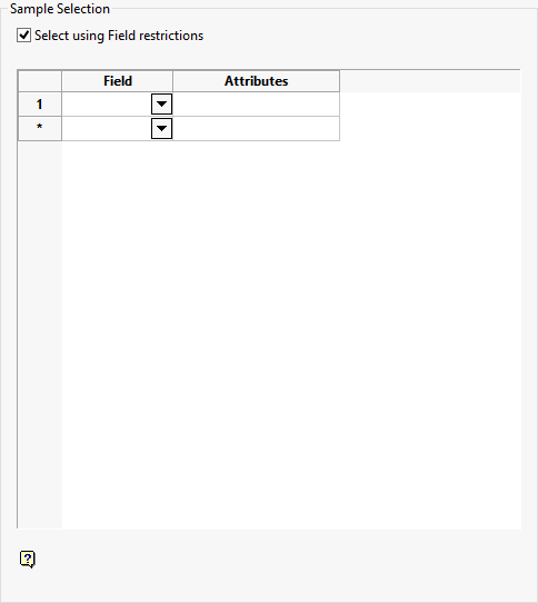 Note: The selection methods accumulate. If more than one method is chosen, then the samples must satisfy each selected method before being included. Within a method, selection is based on the OR selection criterion, except for field restriction, which allose AND/OR selection criteria.