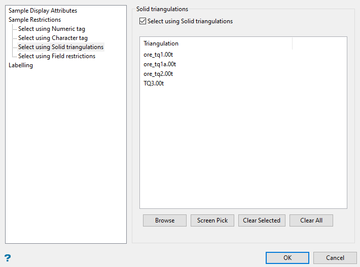 Clicking the Browse icon will display the following panel. From here you can select your triangulations. All triangulations found in the current working directory will be listed in the selection panel that will be displayed.