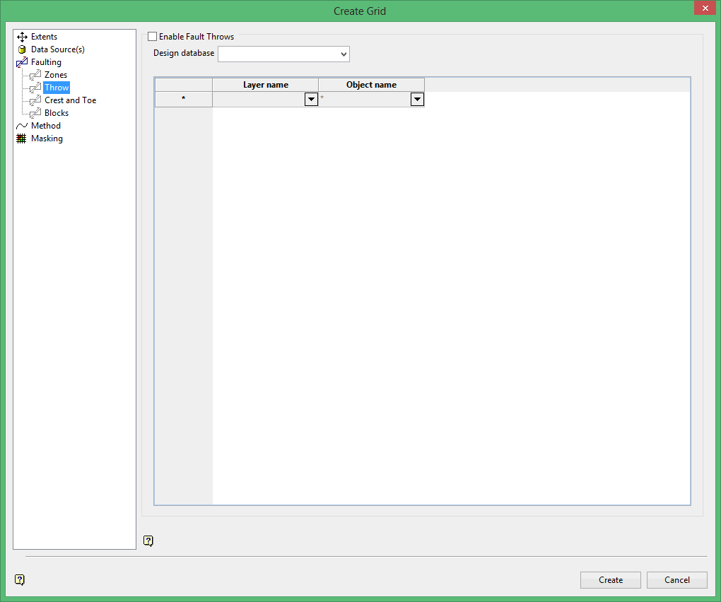 You will need to nominate the design database that contains the strings of interest as well as the horizon(s) that you want to fault. A layer name and object identifier relevant to each horizon will also need to be chosen.