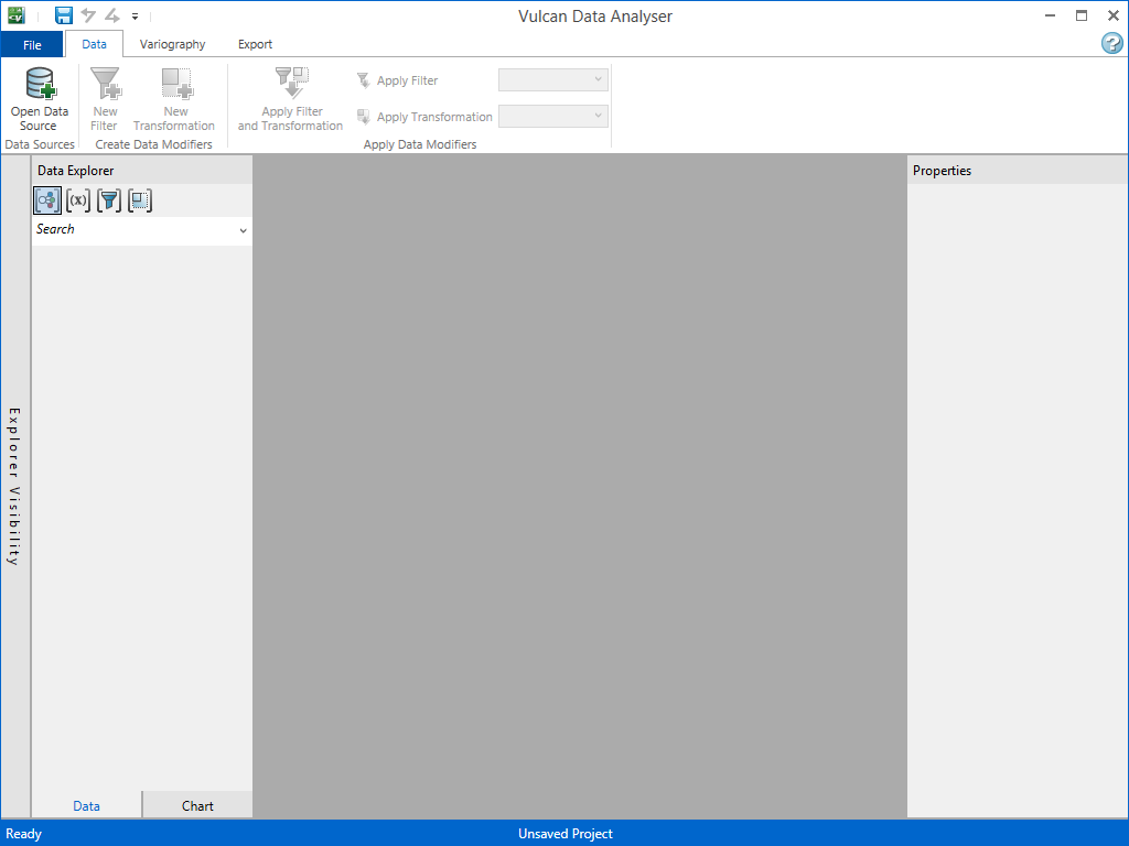 - On the Analyse menu, click Data Analyser. This opens up the main Vulcan Data Analyser window (VDA).