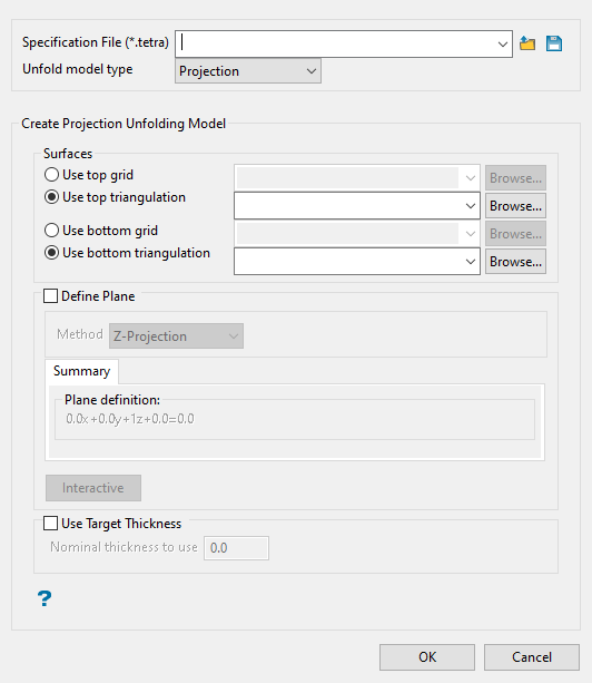 Specify the Surfaces that will be used to perform the bend unfolding. The drop-down lists contains all triangulation found in your current working directory. Click Browse to select a file from another location.