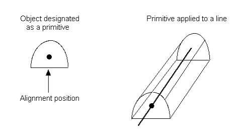 Primitives are useful when repeatedly using complex 3D designs where the shape is always basically the same. Instead of redesigning the object every time it is needed, it can be designated as a primitive and applied to any line. For example, when designing a tunnel you could create a line and then apply an arch shaped primitive.