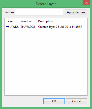 Click on the layer that you want to delete and select OK. To delete multiple layers, use the left mouse button in combination with the Shift key to highlight the layers (this is for layers that are adjacent in the list, for non-adjacent layers use the Ctrl key and the left mouse button) and click OK.