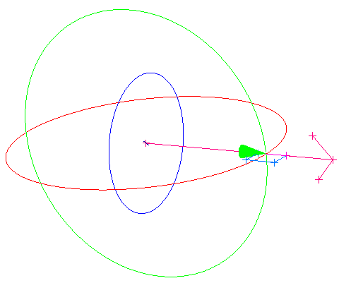 When the objects are selected, three circles, centred on the middle of the objects extents, and a cube are displayed. The red circle represents the bearing, blue the plunge and green the dip. The cube represents scaling. The green arrow represents dip direction (see Diagram 3). The Transform Object panel is also displayed.