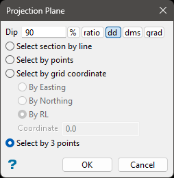 Select by points - Select this option to define the plane by digitising two points and specifying the dip.