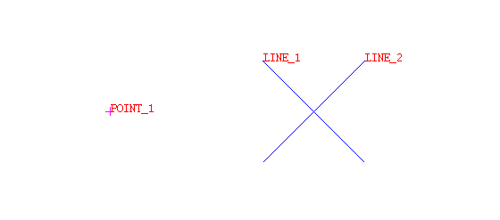 If the chosen lines do not actually intersect, then the selected point will be moved to the point of projected intersection.