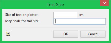 For example: If the text size is set to '0.30' and the map scale to '1:100', then the text will appear on the screen the same size as an object that is 30 units. Changing the scale to 1:1000 (through using either this option or the File > Plot > Plot All option) will result in the text appearing as 300 units. Changing the scale to '10 000' results in a text size of 3000 units and so forth.