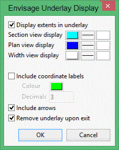 To alter the graphical display of the data extents, select the Vulcan Display button. Once selected, the Vulcan Underlay Display panel displays.