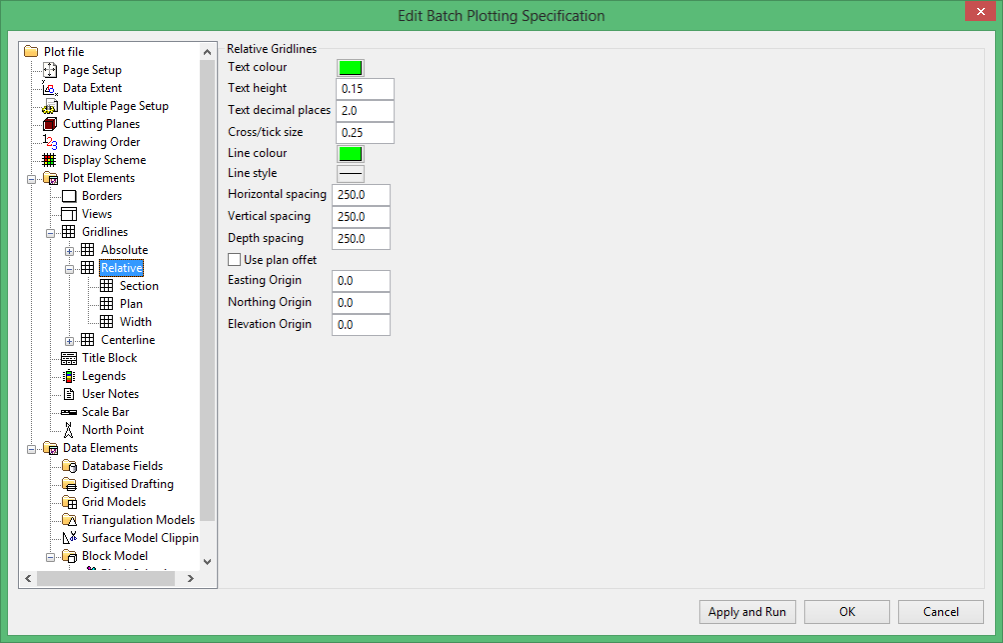 Relative gridlines are gridlines drawn from an origin specified by you. As apposed to Absolute gridlines, which are gridlines that represent real world Easting, Northing and Elevation coordinates.