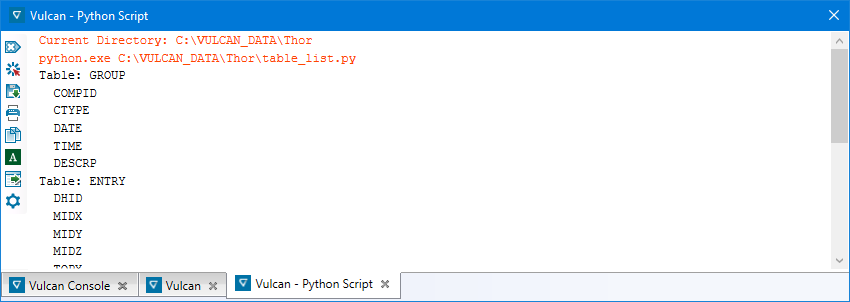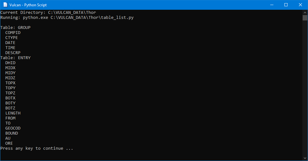 Important: Scripts using the customized Maptek module libraries need be run within Vulcan and are only supported while running from within that environment. Customised setups are at your own discretion.