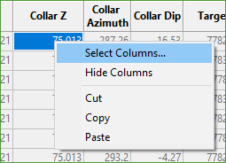 | Collar Number | Each separate collar point selected is assigned a number index as a way of grouping the drillholes by each collar location. |