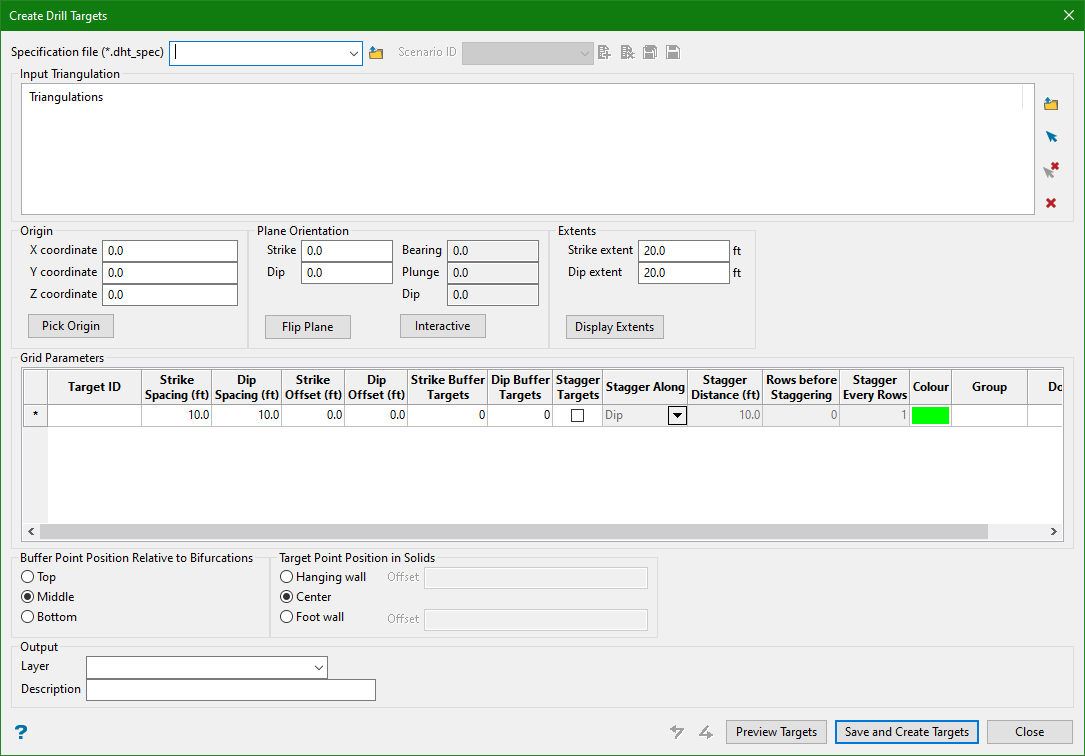 Note: The specification file is used to store the parameters used in creating drilling targets.