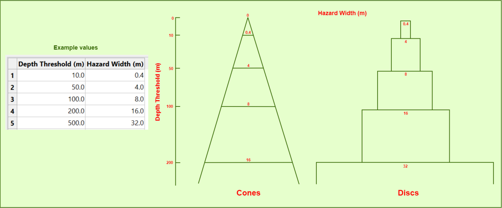 This defines the width (radius, in DG1 units) of the drillhole hazard triangulation(s) that will be created for the associated Depth Threshold.