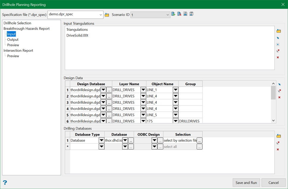 This section allows users to specify the data to be tested to identify any intersecting hazards for the planned drilling. The data selected can be triangulations, design data, and/or drilling databases.