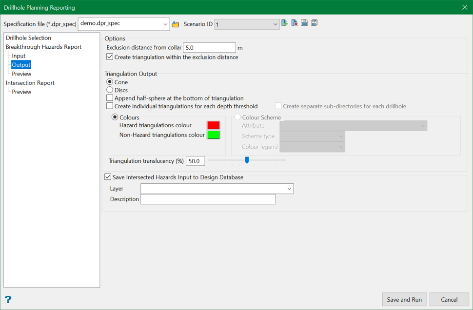 This section allows users to define the settings related to the drillhole hazard triangulation(s) that are created.