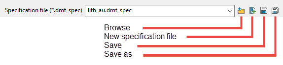 Create a new specification file by entering a name into the textbox. The file extension will automatically be added when the panel is saved.