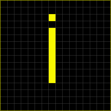 A patterns file is modified through a text editor; for example, NotePad. Note that the patterns file is a 16 x 16 tile. Within it you can make up any pattern you want using 0 (no colour pixel) and 1 (colour pixel). The maximum number of patterns is 48. In the example below, the pattern created is the letter "i".