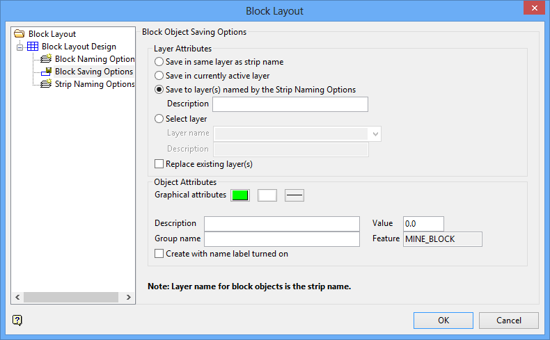 On the Open Pit menu, point to Pit Layout, then click Block Layout to display the following interface.