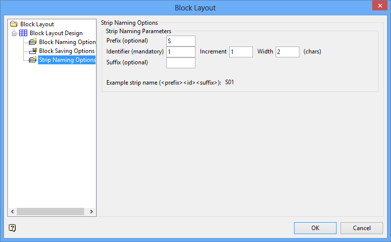 The Use design parameters to define the strip and block layout option must have been selected from Strip and Block Layout for these fields to be available.