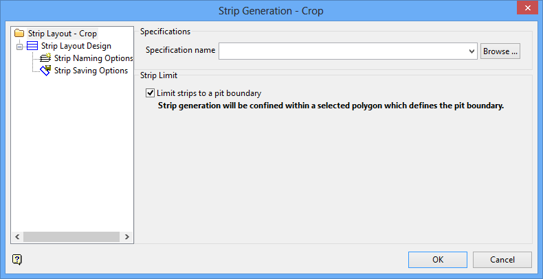 On the Open Pit menu, point to Pit Layout, then click Crop Strips to display the following interface.