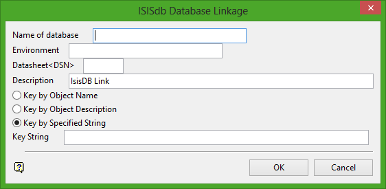 Enter the identifier ( <sdi> ) in the case of design databases, <odi> in the case of non-design databases) of the database to which you want to link the object. You will need to specify the design (datasheet) and the environment to which the database belongs. The project code of the database is assumed to be the same as the currently open database.