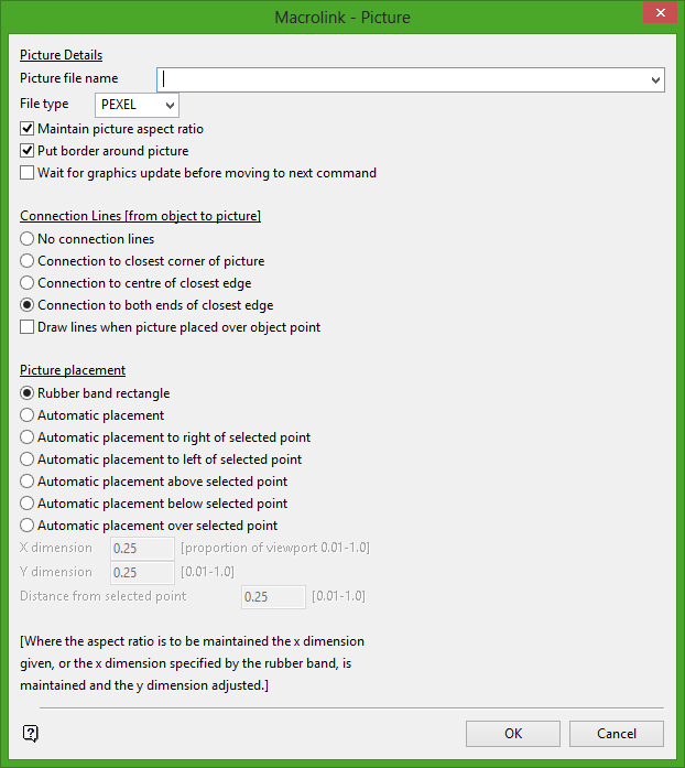 Select this option to place automatically the picture to the right of selected point. (You will be asked to select the point on the screen when this panel is completed.)