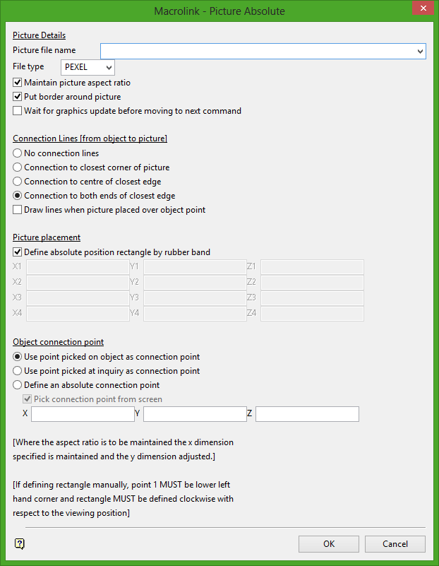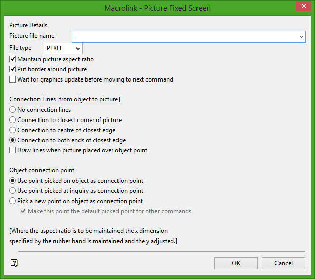 For example, running a macro that puts a picture called poly.rgb on the screen when you select an object called poly, would require editing of the macro if you then wanted to use picture poly2.rgb for object poly2.