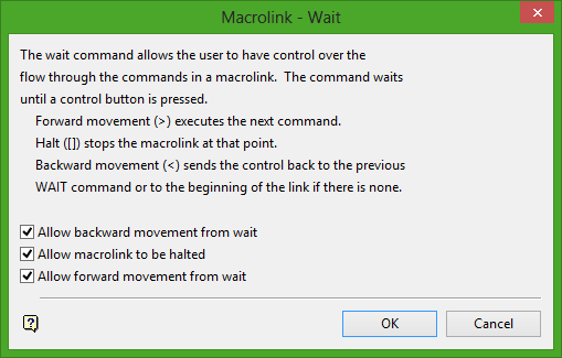 Use the Wait command to dictate the flow of the commands in a macrolink.