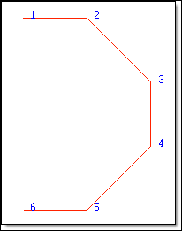 These details are specified when creating objects or when editing the object's attributes (see the options under Design). Also shown are the total points in the string, the total external link data, and the coordinates of each point in the object. The Type column (next to the point number) indicates whether a point is moved to (0) or drawn to (1). A 'drawn to' point is connected, by a line segment, to a previous point, whereas a 'moved to' point is not. For example, in Diagram 1, Point 1 is a move to Point and the remaining points are drawn to.