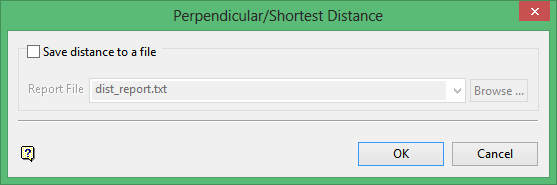 On the Analyse menu, point to Details, and then click Perpendicular/Shortest Distance to display the Perpendicular/Shortest Distance panel.