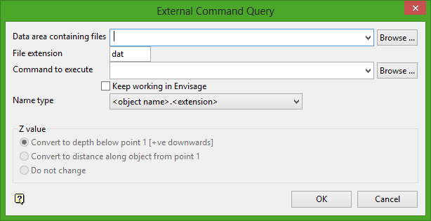 These radio buttons allow the Z value to be converted either to an absolute depth below the first point on the object (first option) or to a distance along the object from the first point (second option); The default (third option) is to leave the value unchanged. This is useful for determining things like downhole depth or depth along hole for drillholes.
