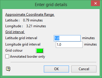 Enter, in minuted of arc, the grid interval for the latitude and longitude.