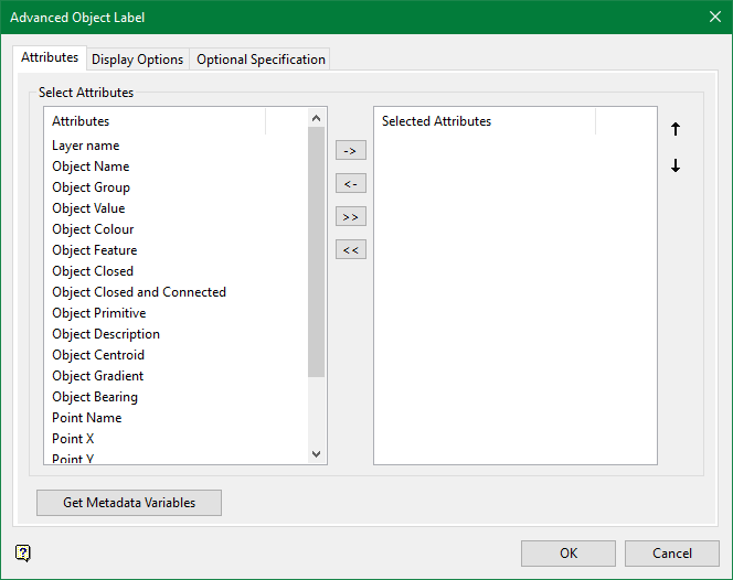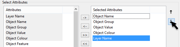 When all the attributes for the label have been selected, they can be arranged in any order. To change the label position, highlight the attribute and then click the up or down arrow to move its position in the list.