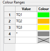 *) as the value for alpha legends, then assign it a colour. This entry must be the last entry in the Colour Ranges table.