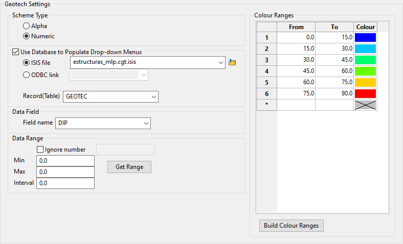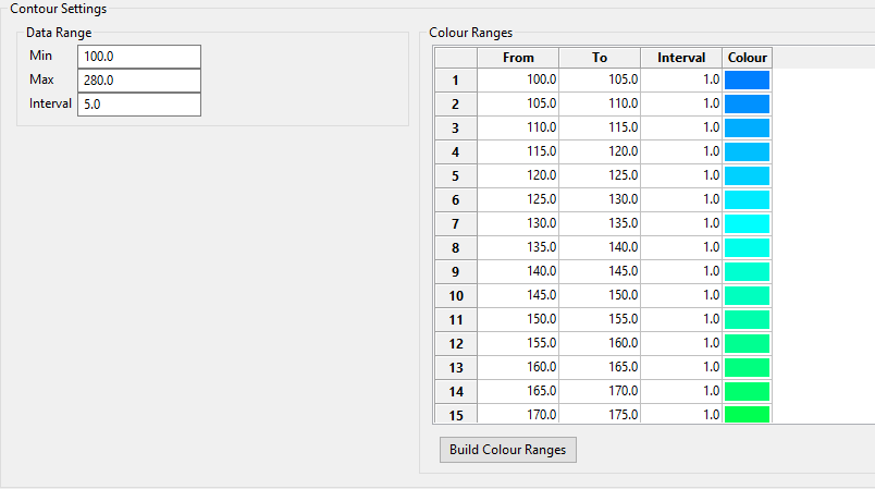.glob) file, then click the Build Colour Ranges button to populate the table. -