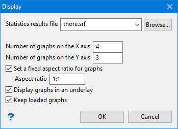 Use the Display option to display calculated statistics/graphs from a previously created Statistics Results file (.srf).