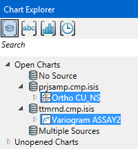 Use the Chart Explorer to select multiple charts of mixed types, for example, semi-variogram, fan variogram and orthogonal variogram.