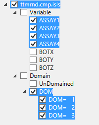 A list of domains is automatically generated by searching through text fields. You may select a domain for use in a study by clicking the box beside the name of the domain. When you select a domain it will appear in the list in the Data Explorer pane, as shown below.