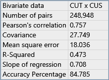 Click this option to show a list of bivariate statistics, such as the example below.