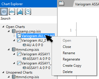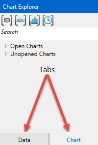 In its initial state, the Chart Explorer shows two categories, open and unopened charts. You can open a chart by double-clicking on the name of the chart in the Chart Explorer pane.