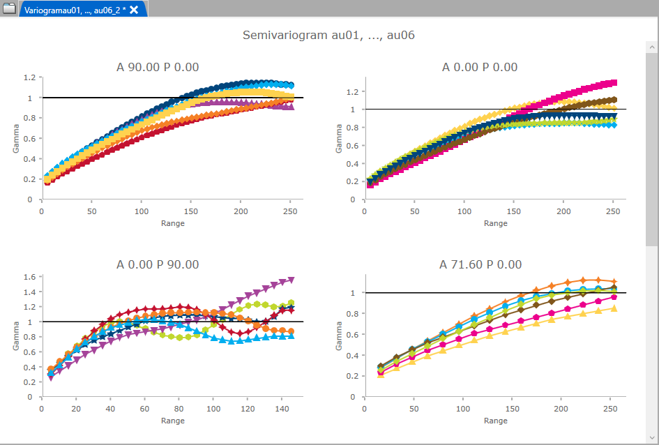 Figure 1: In this image for instance there are 7 directions but grid size is set to 2, therefore only 4 variograms are visible at once. The other directions are visible too, but you will need to scroll down to view them.