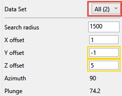 The current data set that is being display on the chart is listed, showing the azimuth and plunge angle.