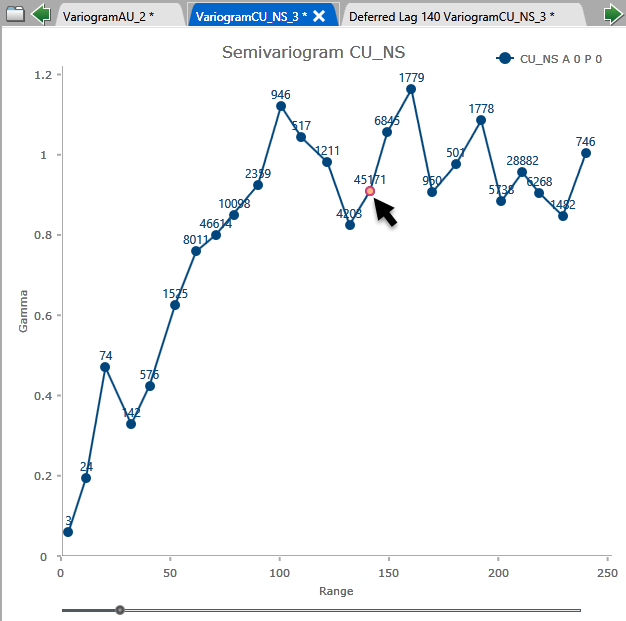Tip:  Set this value to a typical spacing (or larger) between your data, for example, if your data is on a 100 × 100 × 10 grid, set a horizontal distance of 100 and a vertical tolerance of 10. If you receive too few sample pairs, try increasing the tolerances to capture more data otherwise artefacts such as "hole effects" may occur.