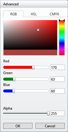 Clicking the Advanced button will bring up a dialog which will allow you to customise the colour to you exact specifications.
